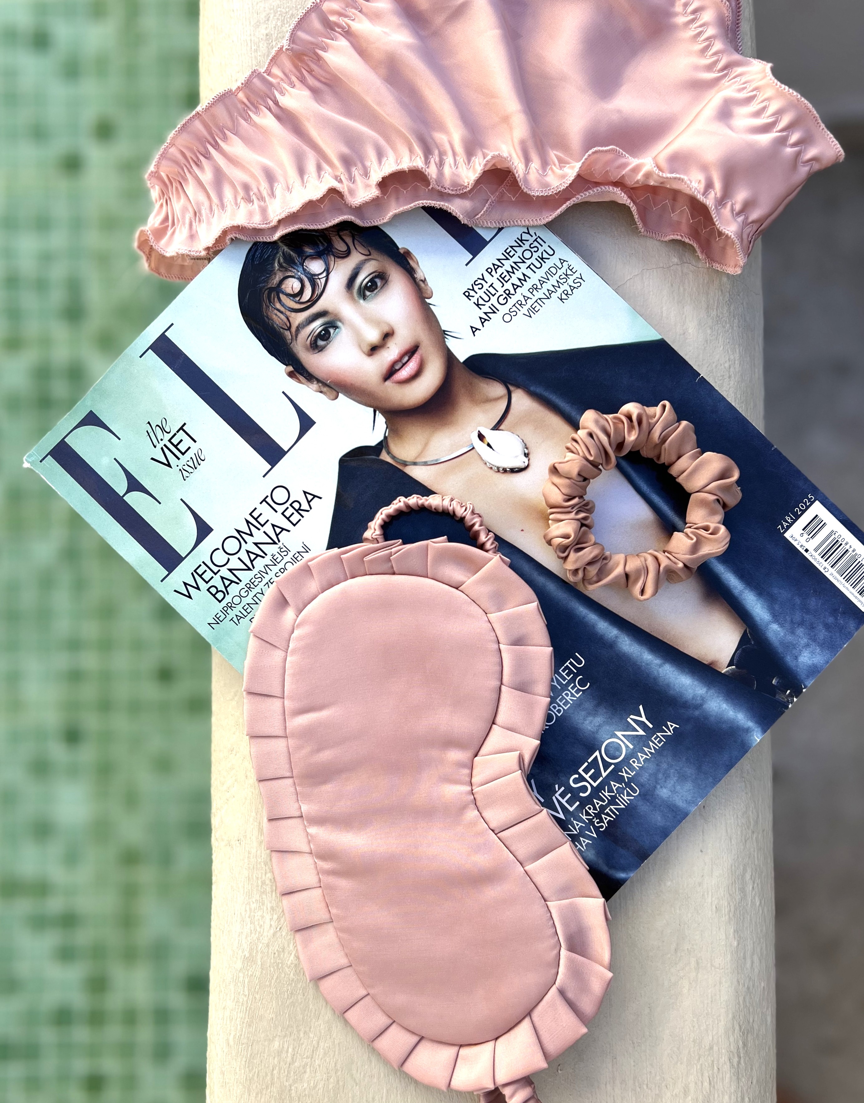 Každá maska je ručně vyrobená s důrazem na pohodlí, eleganci a kvalitní zpracování. Vybrat si můžete z mnoha nádherných odstínů – od něžných pastelů až po výrazné barvy, které dodají šmrnc i vašim nočním rituálům.